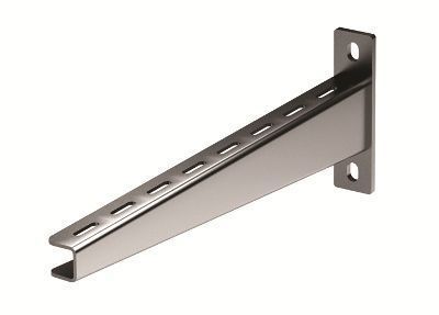 Усиленная консоль предназначена для монтажа нагруженных кабельных трасс. Она крепится на стену, в подвес или в профили. Аксессуар совместим с лотками шириной 500 мм и расчитан на нагрузку 330 кг.
